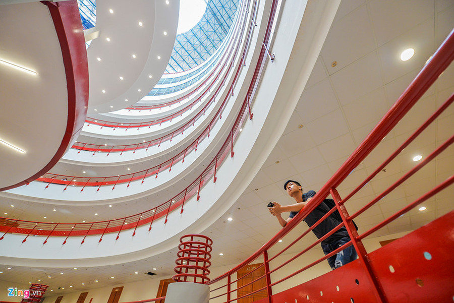 Tòa nhà được bao phủ màu trắng và đỏ giúp tỏa sáng ở mọi góc độ mà vẫn có những điểm nhấn thú vị.