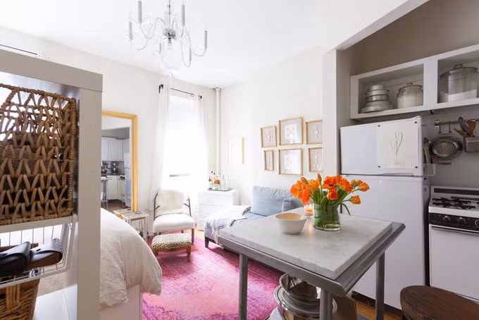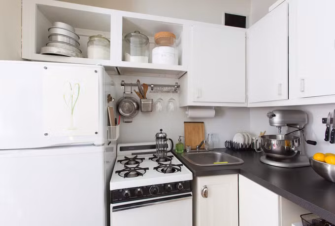 Mỗi khi rảnh rỗi, Julie thích tự làm bánh để tặng cho người thân và bạn bè. Bởi vậy, cô bố trí cả bàn bếp dù hơi vướng lối đi từ cửa vào.