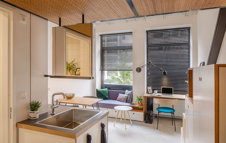 Bằng cách chọn các ô vuông lưu trữ cùng với tận dụng không gian theo chiều dọc khiến căn hộ không bao giờ cảm thấy lộn xộn hoặc chật chội.
