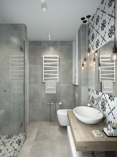 Bóng đèn cổ điển mang lại nguồn sáng dịu nhẹ cho phòng tắm.