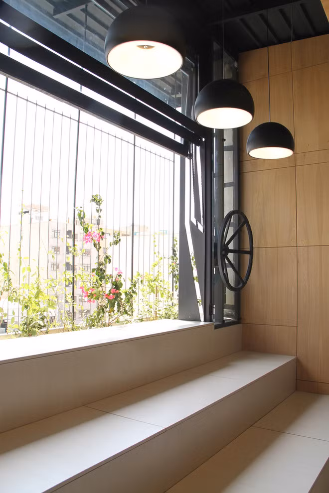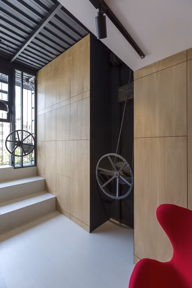 Hệ thống ròng rọc của chiếc giường và cửa sổ là chìa khóa giúp căn hộ thêm gọn.
