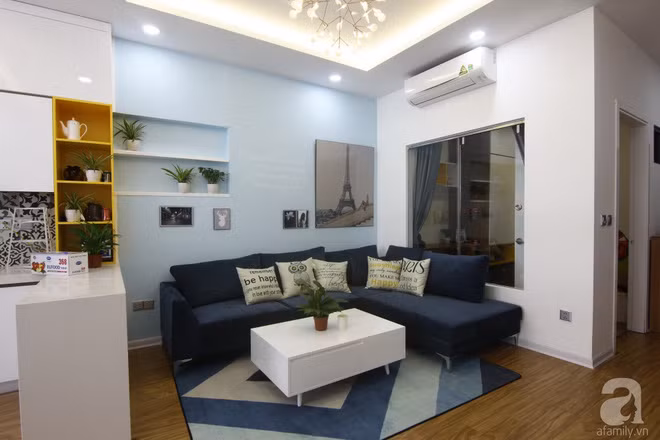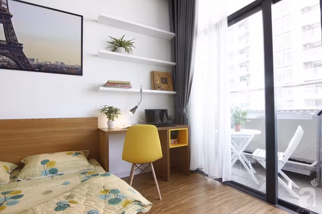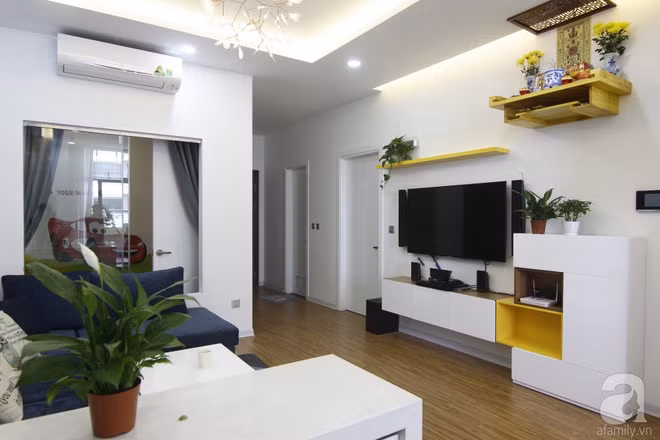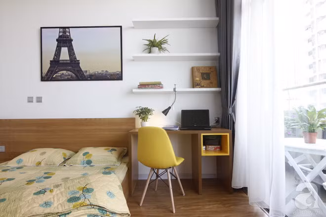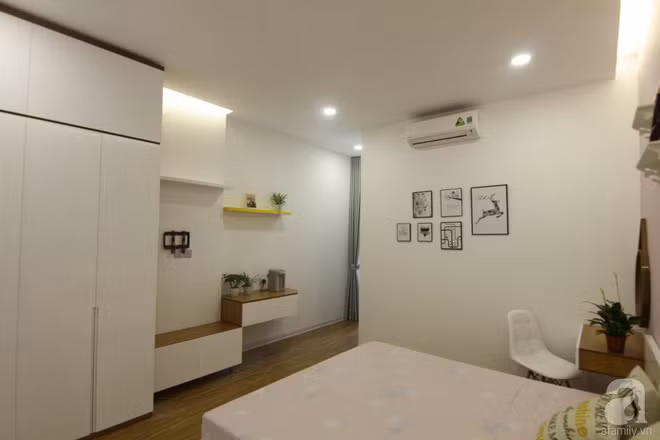 Không gian gọn gàng nhờ tủ âm tường được thiết kế khéo léo ở một phần góc của căn phòng.