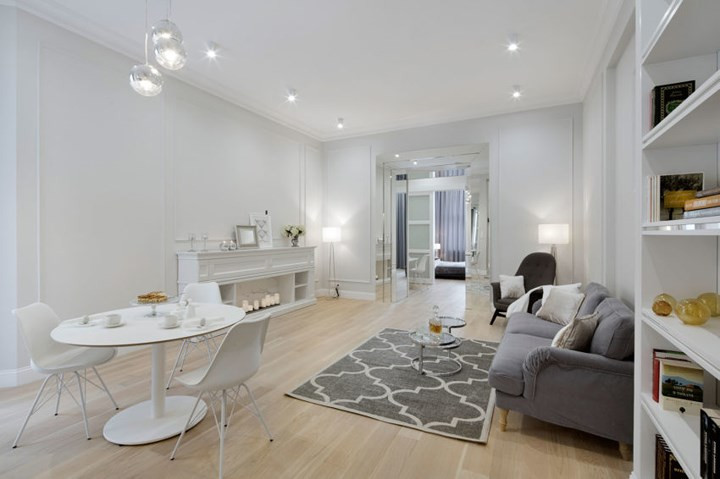 Căn hộ trắng yên tĩnh nằm trong một căn nhà cũ được tân trang lại ở Warsaw, Ba Lan với các nội thất với gam màu trắng đem đến cảm giác thanh thoát.