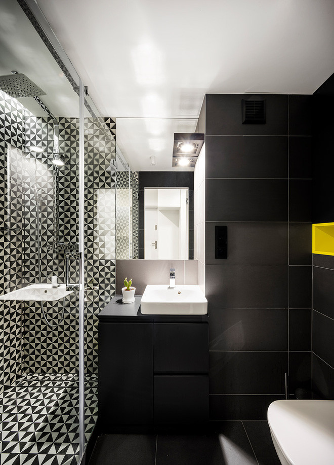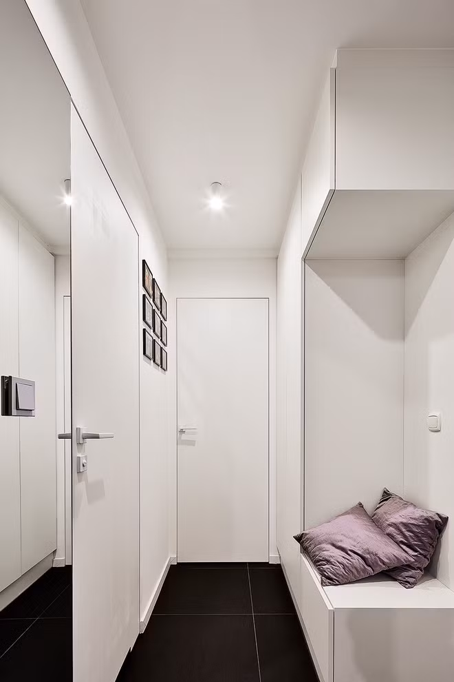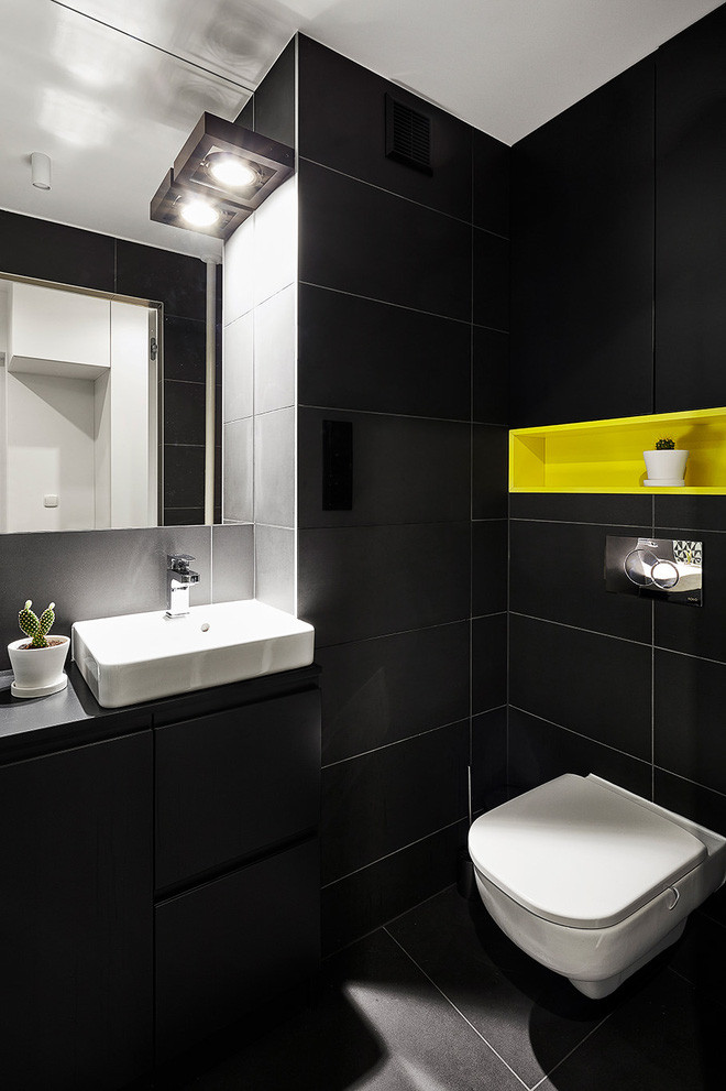 Mỗi khu vực từ hành lang ra vào cho đến phòng vệ sinh đều được tính toán kĩ lưỡng cách kết hợp màu sắc để căn hộ trông rộng rãi hơn mà không đơn điệu.