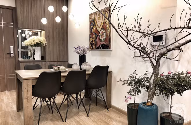 Vì diện tích không quá rộng rãi nên cả chủ nhà và kiến trúc sư đều cố gắng tận dụng từng mét vuông trong căn hộ để thiết kế và bài trí khéo léo, tiện ích cho cuộc sống của gia đình.
