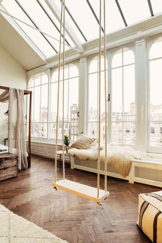 Xích đu thả từ trần nhà tạo cảm giác vui tươi cho các căn hộ, nơi người ta có thể ngồi và ngắm nhìn khung cảnh ngoài trời.