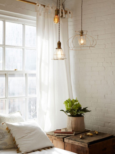 Từng góc ngách, từng chi tiết của căn hộ được bài trí một cách tinh tế. Một góc phòng ngủ với tủ gỗ nhỏ và đèn trần phá cách.