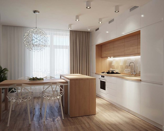 Hệ thống đèn chiếu sáng nhân tạo là sự bổ sung cần thiết cho nhà bếp và bàn ăn.