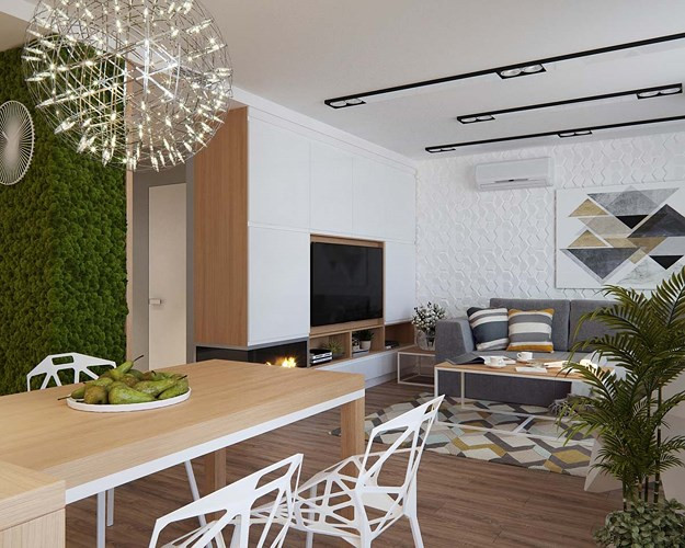 Sự kết hợp giữa phong cách thiết kế đơn giản với vật liệu thân thiện môi trường tạo sức hút qua từng chi tiết trong căn hộ hiện đại ở Lviv, Ukraine.