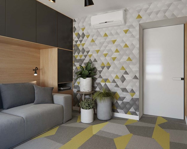 Bức tường chạm khắc hình đá tổ ong tạo nên chút cá tính cho không gian.