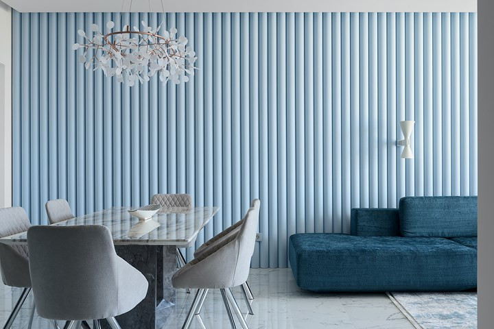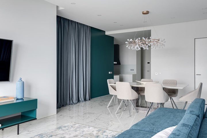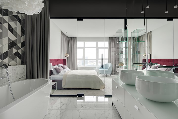 Chất liệu kính, đá granit, đá cẩm thạch mang đến cho căn hộ hiện đại phong cách sang trọng nhưng không xa hoa, kiểu cách.