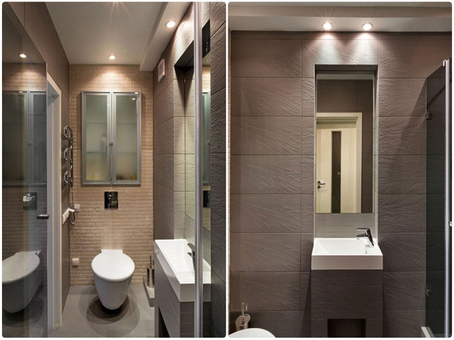 Phòng tắm đơn giản, tiện dụng với nội thất hiện đại cùng gam màu trung tính.