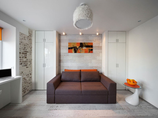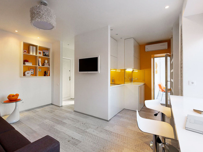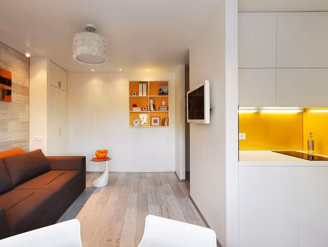 Vì không gian sống có diện tích chỉ vỏn vẹn 22m², chủ nhân của căn hộ đã quyết định chọn phong cách tối giản để trang trí, làm đẹp. Hơn nữa, để căn hộ đầy đủ các khu vực chức năng, chủ nhân không quên sử dụng nội thất đa năng. Đồng thời gia chủ tạo sự liên kết liền mạch giữa các không gian để căn hộ thoáng sáng và rộng rãi hơn.