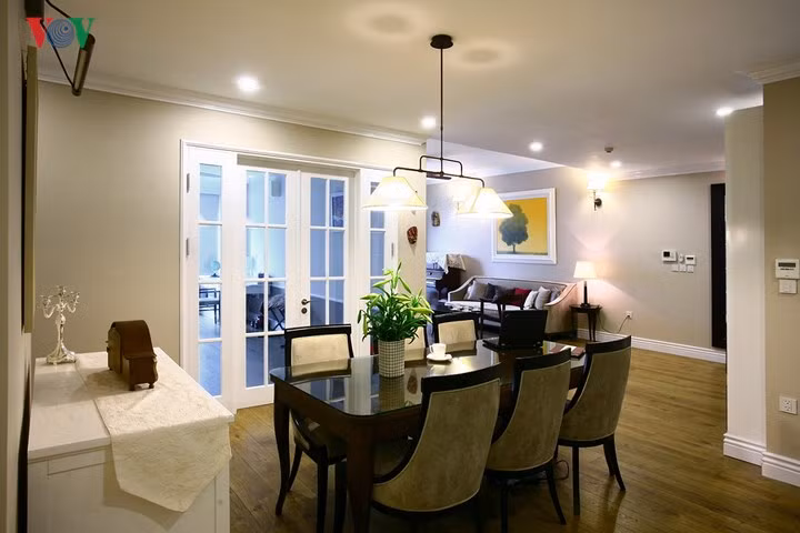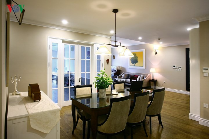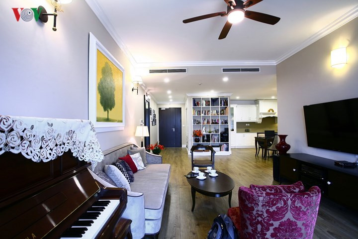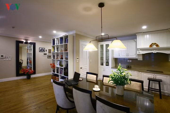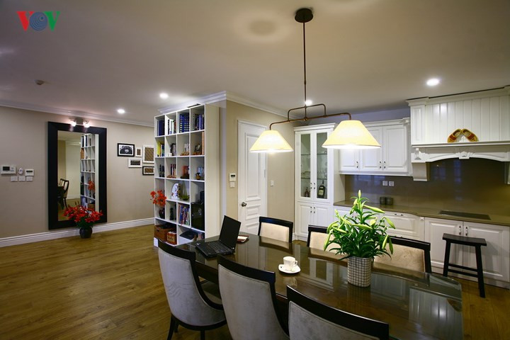 Một sự đồng điệu trong không gian từ ý tưởng của kiến trúc sư và nhu cầu chủ nhà. Căn hộ mang phong cách cổ điển, lãng mạn pha lẫn hiện đại.