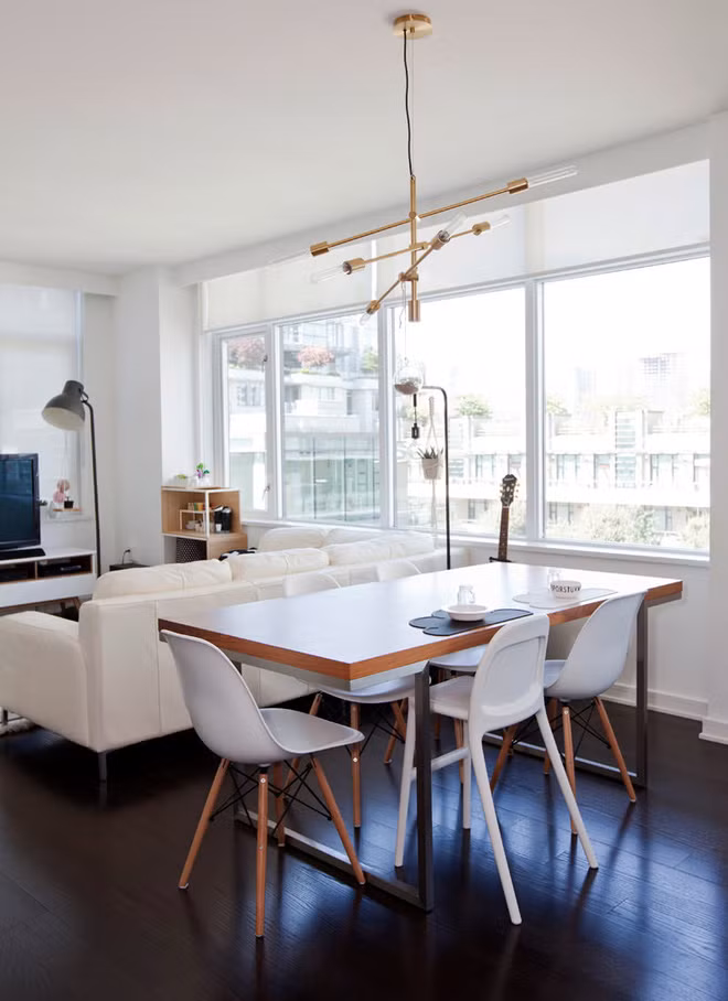 Góc bàn ăn được bố trí đơn giản với hệ thống ánh sáng, với màu sắc rất đỗi quen thuộc, chất liệu bình dị, gần gũi.
