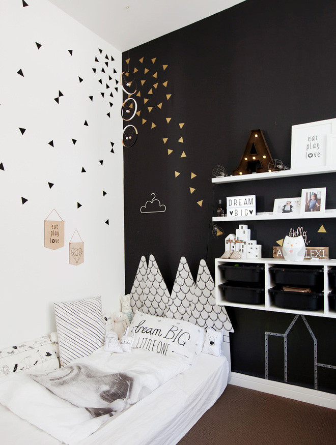 Phòng ngủ của các bé luôn là nơi tuyệt vời để bố mẹ thể hiện sự quan tâm đặc biệt dành cho con cái. Hai bé được đặt giường song song với nhau. Bức tường cạnh đầu giường là nơi giúp con thỏa sức sáng tạo và thể hiện tình yêu thương của mình đối với cuộc sống. Chủ nhân của ngôi nhà cũng khéo léo thiết kế nhiều dạng kệ khác nhau giúp bức tường không còn rảnh rỗi, giúp đồ dùng đẹp mắt được trưng bày trang trọng và sinh động trong phòng bé.