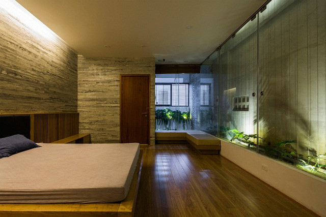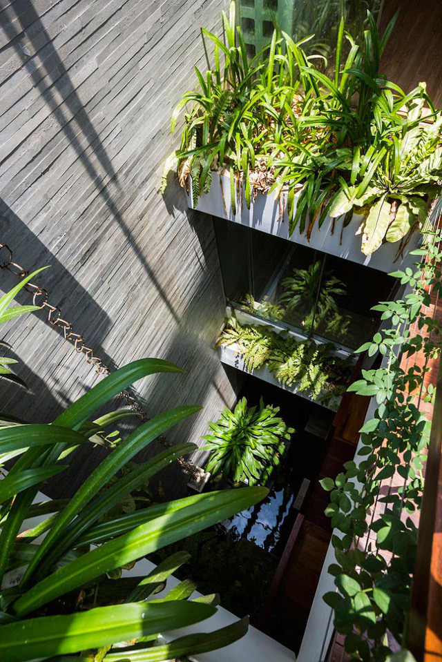 Các phòng chức năng đều được thiết kế xoay quanh khu vườn thẳng đứng này.
