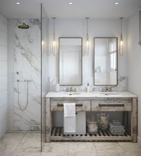 Không gian nhà tắm, nhà vệ sinh cũng sử dụng những vật liệu tương tự.