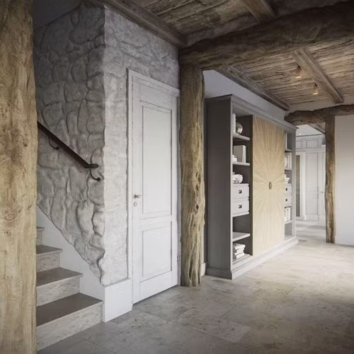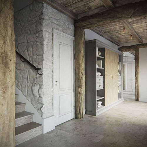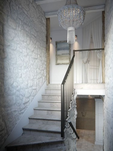 Cầu thang trong nhà cũng được lát đá, mang đến tổng thể một căn nhà đá độc đáo.