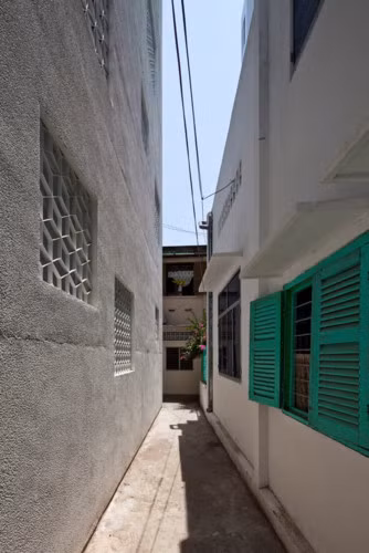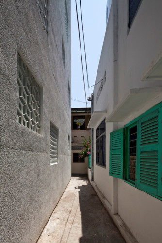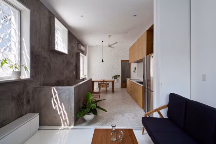 Khoảng cách giữa căn nhà với hàng xóm chỉ chưa đầy 1 m nên các kiến trúc sư phải rất đắn đo với tính riêng tư của thiết kế.