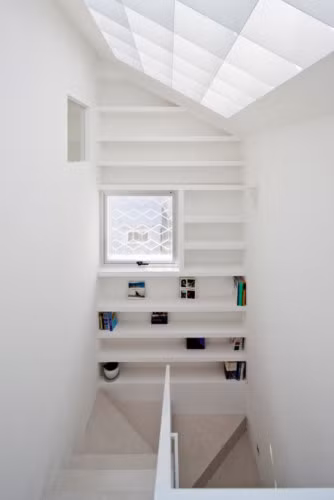 Cầu thang chính của căn nhà được trang trí bằng sách, giúp khách tới thăm nhà phần nào đoán được văn hóa đọc của chủ nhà.