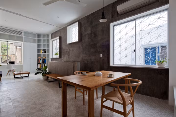 Căn nhà sử dụng rất nhiều vật liệu truyền thống tạo nét cổ kính đan xen giữa thiết kế tối giản hiện đại.