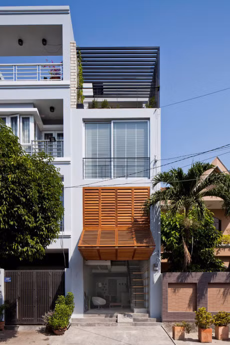 Một căn nhà phố tại quận 7, TP. HCM có cửa chính độc đáo khi mở được theo nhiều cách như kiểu truyền thống hoặc gấp lên.