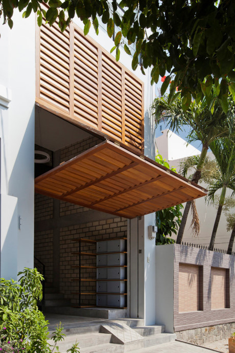 Khác với các căn nhà phố xung quanh, công trình có cửa chính mở theo cách gấp lên rất độc đáo.