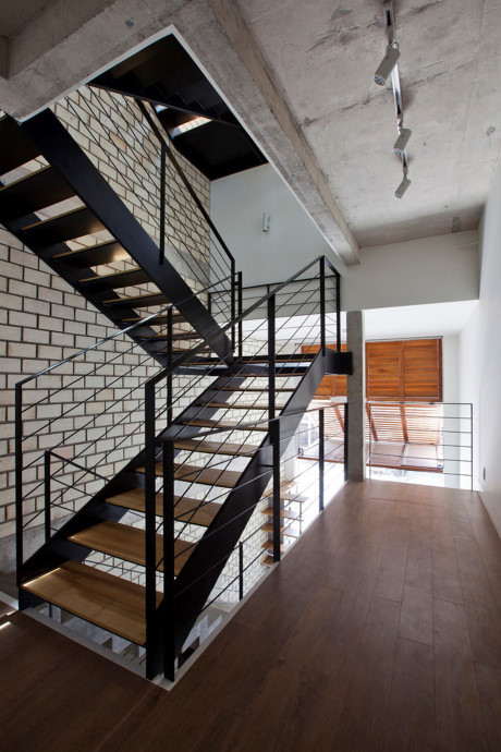 Cầu thang gồm nhiều chi tiết mảnh dẹt, giúp không gian nhìn thoáng hơn.
