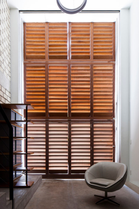 Ngay cả khi đóng kín, cửa chính vẫn có thể lấy sáng nhờ thiết kế dạng cửa chớp.