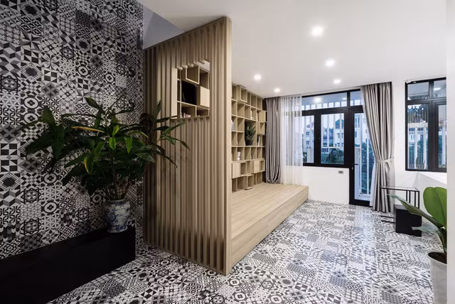 Gạch lát họa tiết độc đáo có thể bắt gặp ở khắp nơi trong nhà.