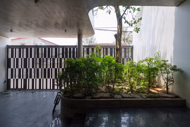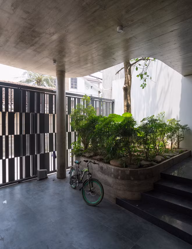 Mặt tiền của căn nhà tạo cảm giác như một vườn cây nhiều tầng.
