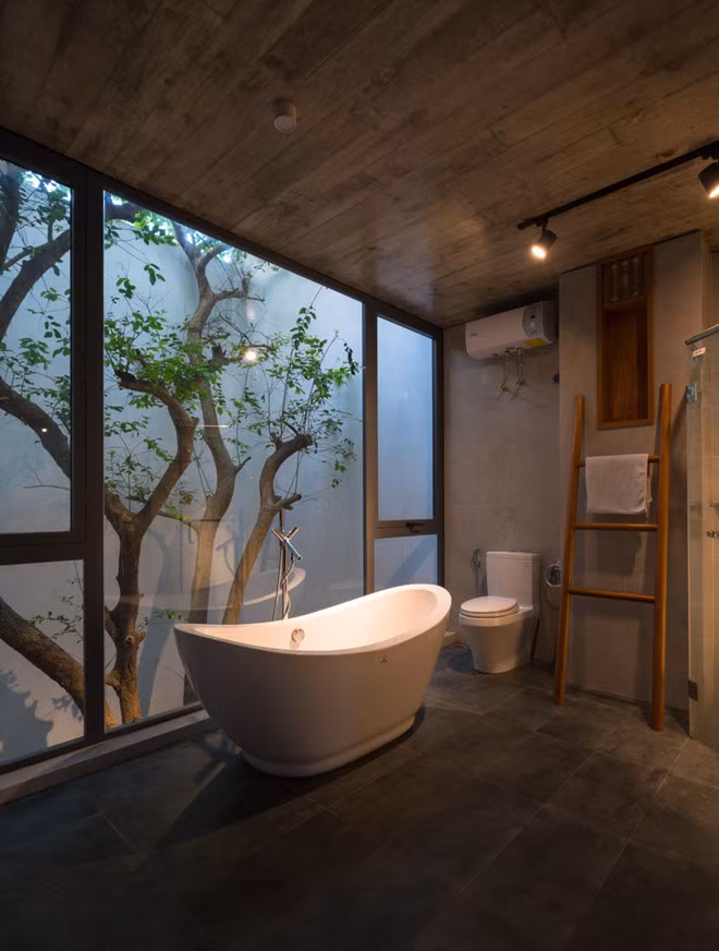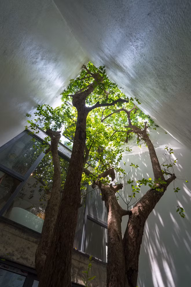 Giếng trời gây ấn tượng với cây thân gỗ cỡ lớn trong nhà.