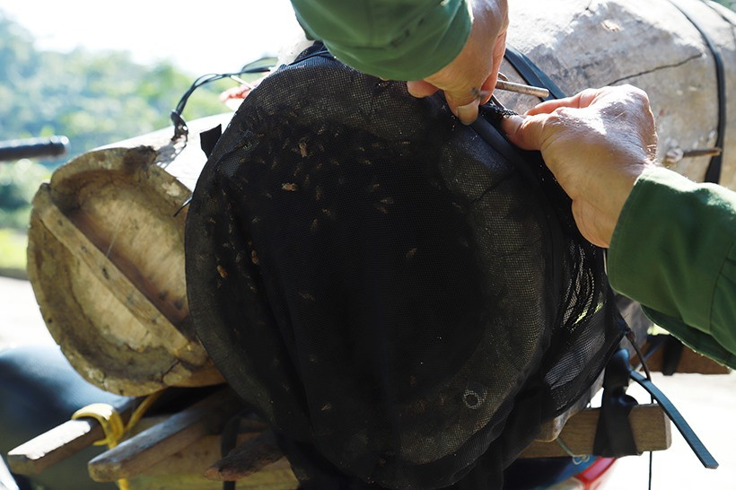 Vừa gắn những tổ ong đã chuẩn bị sẵn, anh Thi vừa tóm tắt quy trình săn ong: “Trong quá trình tìm chỗ trú đông, đàn ong sẽ giao việc tìm chỗ ở cho một số con ong khỏe mạnh, nhanh nhẹn nhất trong đàn. Những con ong này gọi là “ong sứ” có nơi gọi là “ong thăm”.