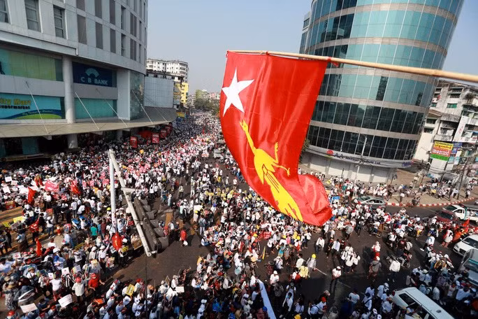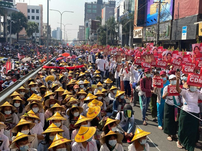 | Một cuộc "tổng biểu tình" đang diễn ra trên toàn lãnh thổ Myanmar. Ảnh: Asia News |