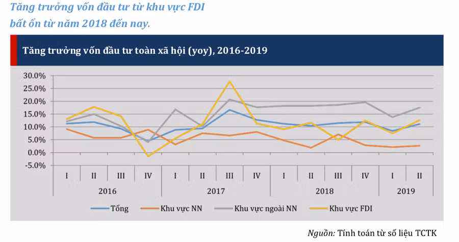 Theo TS. Nguyễn Đức Thành, Viện trưởng VEPR, chiến tranh thương mại Mỹ Trung bắt đầu từ năm 2018 được hi vọng sẽ gia tăng dòng vốn vào Việt Nam nhưng thực tế không phản ánh điều đó. Trong 6 tháng đầu năm 2019, vốn FDI tăng 9,7%, tức cao hơn mức 8,5% của cùng kì năm 2018, nhưng chưa đuổi kịp được tốc độ của khu vực ngoài nhà nước. Tính đến cuối tháng 6/2019, 1.723 dự án cấp phép mới số, tăng 26,1%; vốn đăng ký đạt 7.411,8 triệu USD, giảm 37,2% về vốn đăng ký so với cùng kỳ năm 2018.