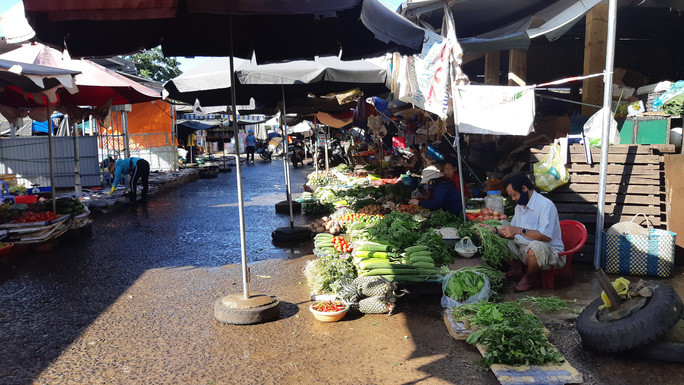 Sáng ngày 28-10, chợ Tân An, TP Buôn Ma Thuột, tỉnh Đắk Lắk vốn dĩ tấp nập người mua bán nhưng nay khá vắng vẻ. Xung quanh chợ được rào bằng lưới B40.