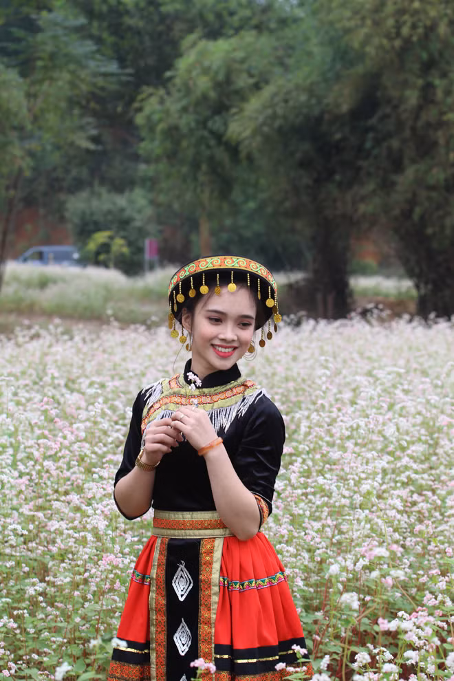 Cánh đồng hoa tam giác mạch được trồng ở Làng văn hóa các dân tộc Việt Nam (Đồng Mô, Sơn Tây, Hà Nội) với diện tích khoảng 5.000 m2. Các bạn trẻ không ngừng check-in trên cánh đồng hoa tam giác mạch nở rộ.