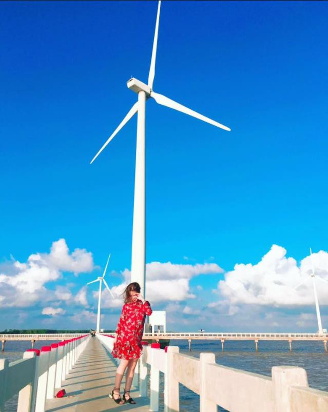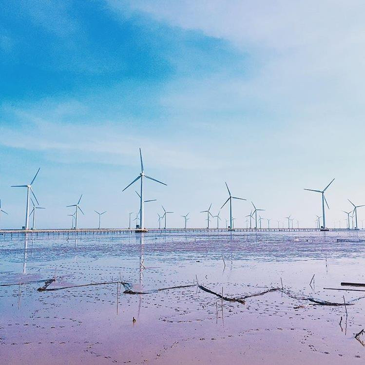 Những cánh quạt gió khổng lồ quay đều giữa nên trời xanh thẳm tạo nên một khung cảnh lãng mạn, đầy chất thơ.
