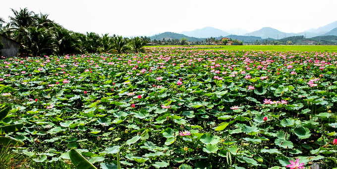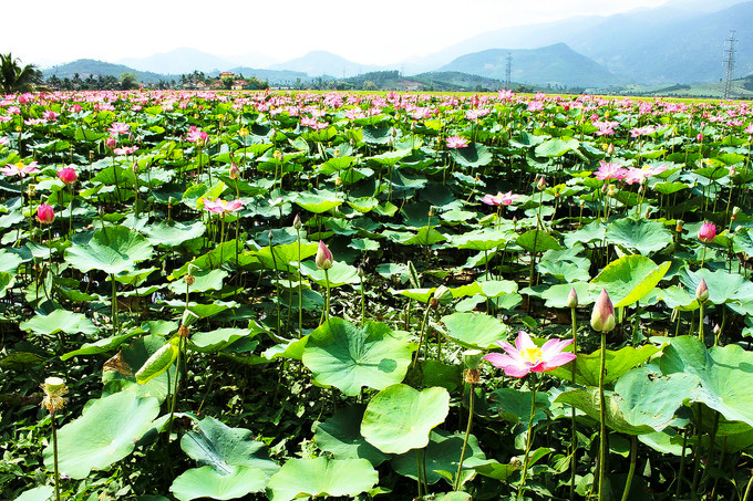 Cách thành phố Nha Trang hơn 30 km là vùng trồng sen rộng hơn hàng chục hecta ở xã Ninh Hưng, đang vào mùa nở rộ.
