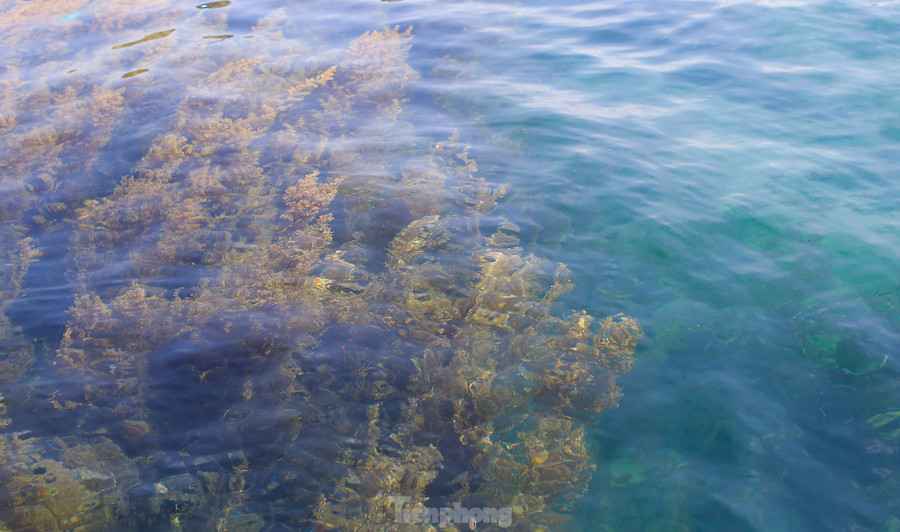 | Những lớp rong mơ vàng óng, qua làn nước biển trong vắt như gương tạo nên một khung cảnh tuyệt đẹp. Ảnh: Trương Định. |