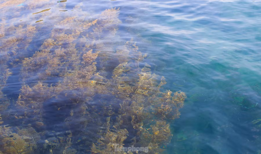 | Mùa rong mơ phát triển cũng là điều kiện thuận lợi cho các loài thủy sản làm nơi trú ngụ và sinh sản, góp phần đa dạng hệ sinh thái biển nơi đây. Ảnh: Dũng Nhân. |