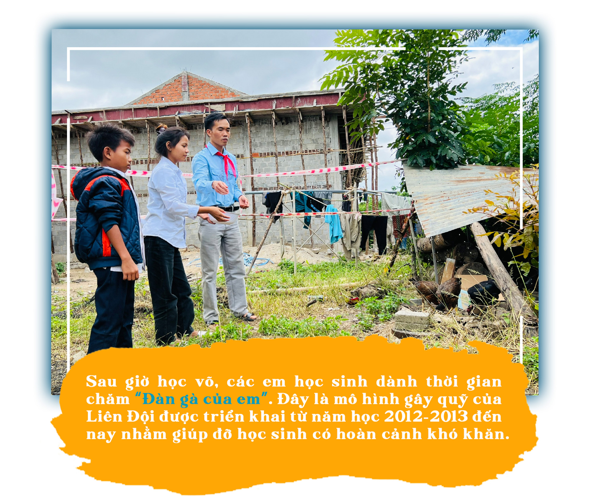 Đầu mỗi năm học, Liên Đội trích kinh phí mua 50 con gà giống, làm chuồng ở góc sân trường để tiện chăm sóc. Thầy Hương chọn mua gà có nguồn gốc, sau đó tiêm vắc xin đầy đủ rồi giao cho học sinh chăm sóc. Khi gà lớn, một phần sẽ được bán gây quỹ Liên Đội, một phần dành để các em liên hoan cuối mỗi học kỳ. Mô hình “Đàn gà của em” đã góp phần lan tỏa ý nghĩa phong trào “Tuổi nhỏ làm việc nhỏ”, vừa giúp Liên Đội chủ động nguồn quỹ, vừa giúp các em biết quý trọng công sức lao động.