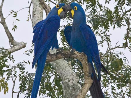 Đôi vẹt xanh tía Nam Mỹ bị một nhiếp ảnh gia người Brazil “bắt quả tang” khi chúng đang chuẩn bị trao nhau nụ hôn nồng cháy.