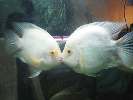 Hai chú cá vẹt trong một cửa hàng ở Trung Quốc đã trở nên nổi tiếng bởi chúng không thể ngừng hôn nhau. Ông chủ cửa hàng cho biết đã tìm cách “chia loan rẽ thúy” bằng cách “nhốt” chúng riêng ra bởi cho rằng chúng tiếp xúc với nhau quá nhiều như vậy cũng không tốt. Nhưng “đôi uyên ương” tương tư đến mức chẳng còn thiết ăn, cuối cùng ông chủ đành nhượng bộ để chúng được tương phùng.