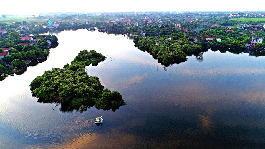 Truyền thuyết kể rằng, đầu thế kỷ thứ 15, trận đại hồng thủy làm con đê lớn ven con sông hồng vỡ đến 3 lần tạo nên 1 hòn đảo  nổi giữa hồ được ví như 1 viên ngọc quý mà thiên nhiên ban tặng.