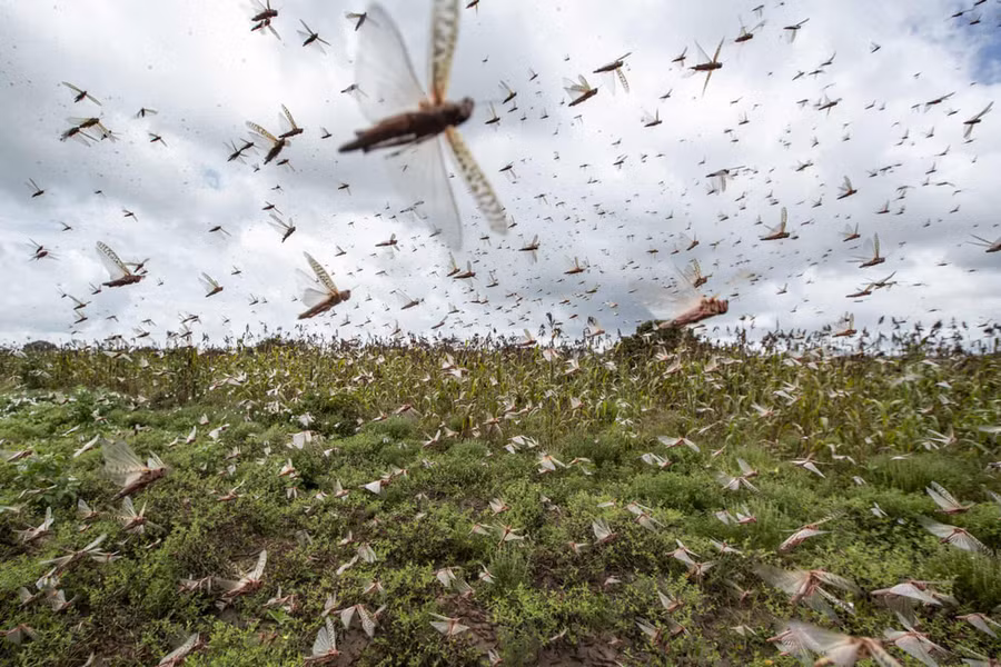 Ndunda Makanga, một nông dân Kenya, cho biết: "Ngay cả những con bò cũng ngỡ ngàng trước những gì đang xảy ra. Cào cào, châu chấu chén sạch tất cả mọi thứ, từ bắp, đậu, cao lương".