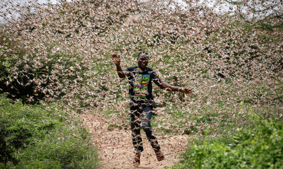 Đây là nạn cào cào, châu chấu tồi tệ nhất ở Kenya trong 70 năm qua. Hàng trăm triệu con côn trùng tràn vào quốc gia này từ các nước lân cận là Somalia và Ethiopia.
