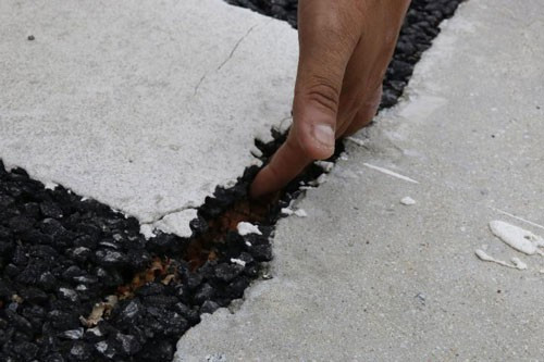 Xuất hiện nhiều vết nứt lớn ở đầu các cây cầu bị lún. Ảnh: Trần Thường