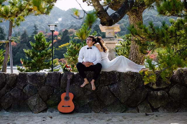 Theo lời chia sẻ của cô gái Võ Nhung thì tình yêu của họ gắn liền với cây đàn, với âm nhạc nên khi chụp ảnh cưới họ quyết định sẽ chụp chung cùng cây đàn.